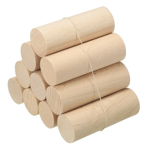 10 Pcs Unfinished Wooden Dowel Rods Round Hardwoods Stick 1-3/8 x 4" - Natural
