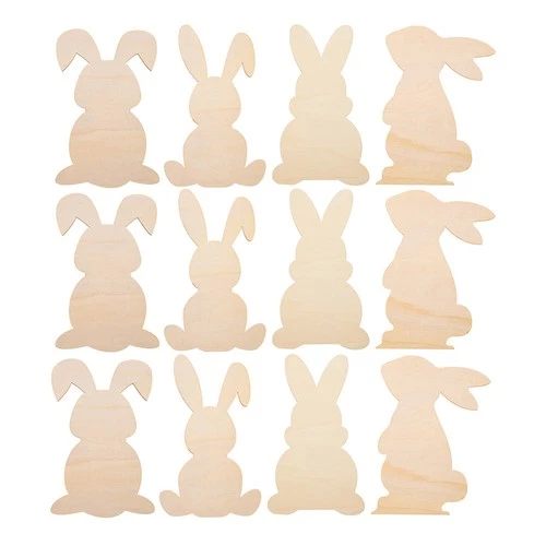 12pcs Large Easter Cutouts Unfinished Wooden Bunny Cutouts Blank