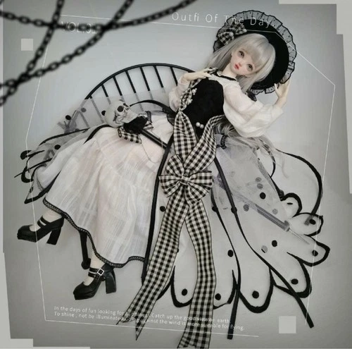 BJD SD DD 1/3 Outfit Set Black White Dress Skull Stick Wand Dealer Made Clothes
