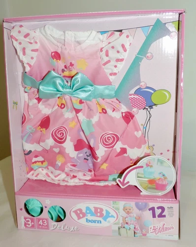 NEW Baby Born DELUXE BIRTHDAY DRESS w/Shoes & 2 Cupcake Accessories