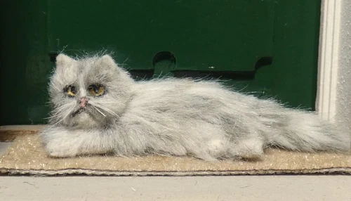 DOLLS HOUSE CAT OOAK HANDMADE 1:12th SCALE FUR LONG HAIRED CAT LYING DOWN