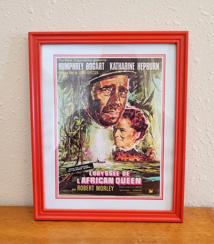 Vintage BOGART HEPBURN African Queen French (1965) Framed Movie Poster Print