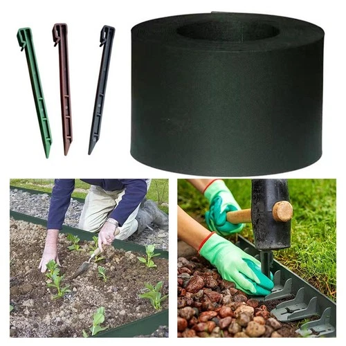 Garden Landscaping PE Greening Edging Fence 10 Meter Roll with Fixed Piles