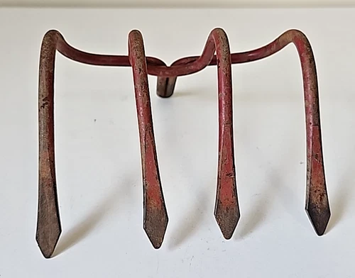 Vintage Red Garden Claw 4-Tine Fork Clam Rake Head Tool Farm House Shed Decor