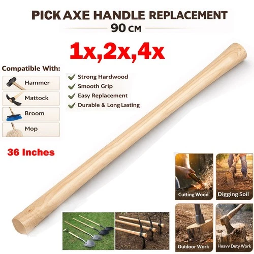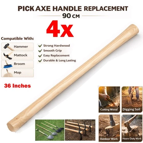 4x Pick Axe Shaft Handle Replacement 36" Heavy Duty Wood Pickaxe Garden Mattock