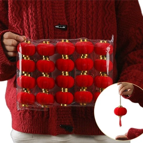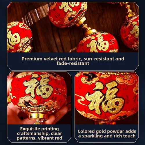Flocked Red Velvet Lantern with Lunar Motif for Holiday Indoor and Outdoor Use