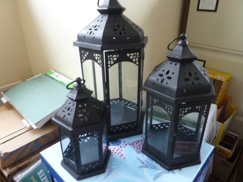 Pair Of Moroccan Solar Lanterns Black Metal Garden Patio UK**Last Pair**