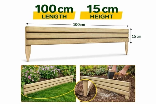 1m x 15cm Wooden Slat Border Fence Garden Fence Lawn Edging