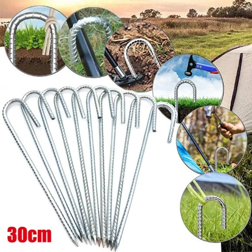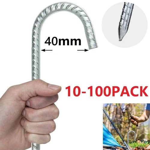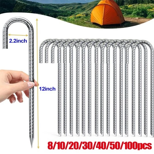10-100pc Heavy Duty 12" Galvanised Steel Ground Stakes J Shaped Tent Pegs Garden
