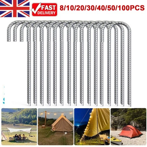 10-100pcs Heavy Duty 12" Galvanised Steel Ground Stakes J Shap Pegs Gazebo Tent