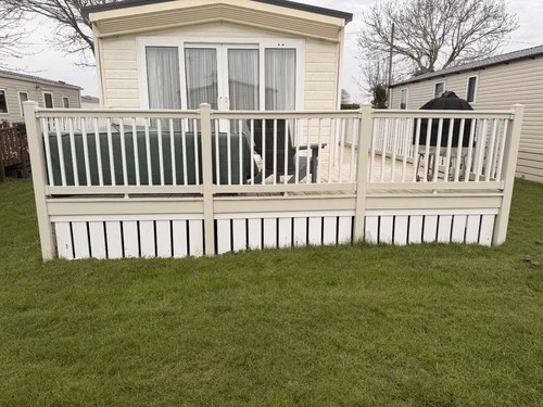 Static caravan veranda decking wrap around Composit.