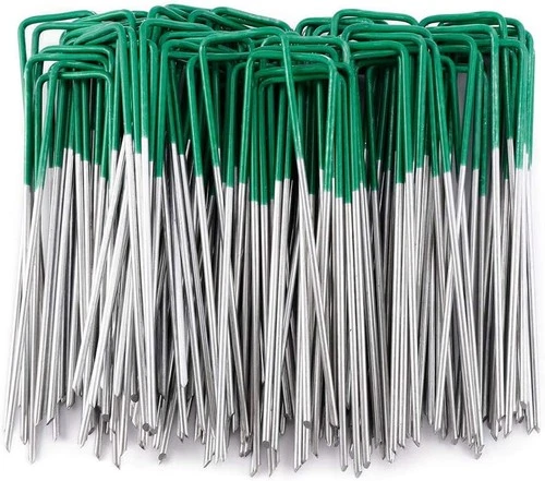 Artificial Grass Pins (Green) Galvanised Metal U Pegs Membrane Fabric Staple**
