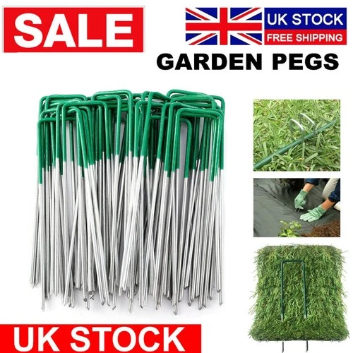 50/100X Garden Pegs Stakes Staples Securing Lawn - Galvanised U Shaped Nail Pins