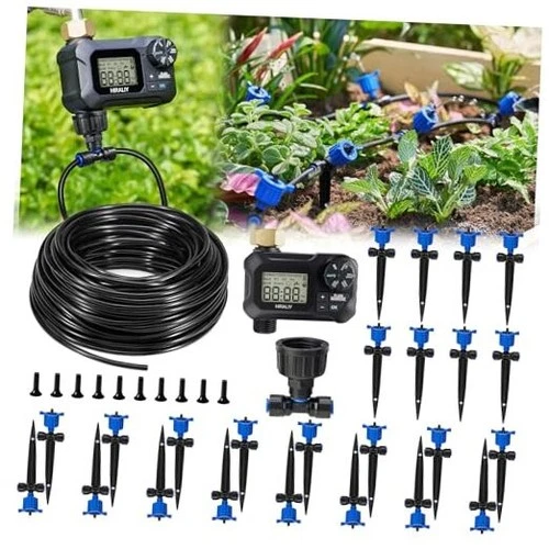 Pressure Compensated Drip Irrigation System with Timer, No-Leak Quick 100FT