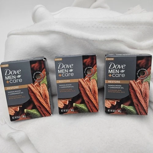 Dove Men+Care Restore Sandalwood Cardamom Oil Cleansing Bar 5oz 3 Pack NEW