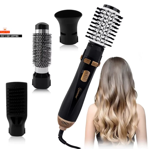 Hatteker EU 4-Head Hot Air Brush Hair Dryer Strong Wind Electric Straightener Cu