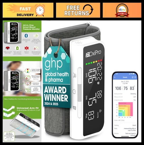 Smart Blood Pressure Monitor with App - Bluetooth Arm Cuff Device - Health Award
