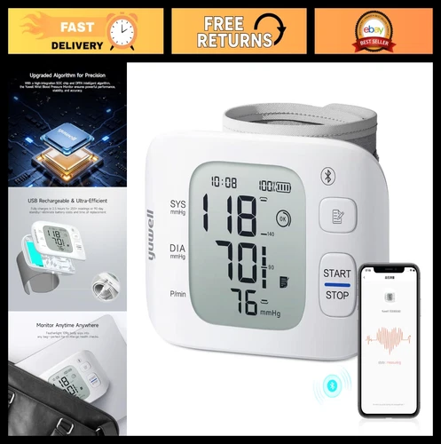 Smart Rechargeable Wrist Blood Pressure Monitor with Large Cuff, Voice & Travel