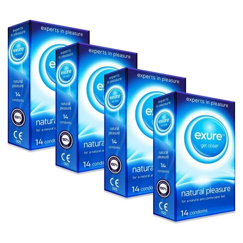 56 x PLUS 14 FREE! Exure CONDOMS NATURAL RIBBED FLAVOURED PLEASURE FUN Discreet