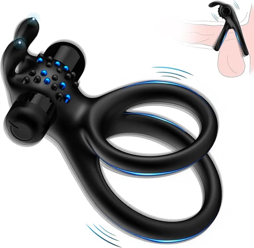 Dual Vibrating Cock Penis Ring Vibrators with Rabbit Ears, COC Rings Male Men En
