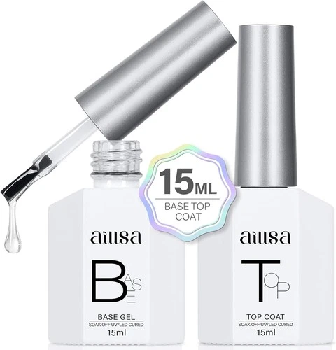 Gel Nail Polish, 2 x 15 ML Base and Top Coat, UV/LED Soak Off, No Wipe Top Coat