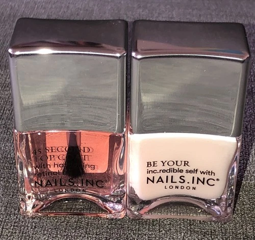 Nails Inc 45 Second Top Coat Retinol Base Glow Base Coat Set Brand New