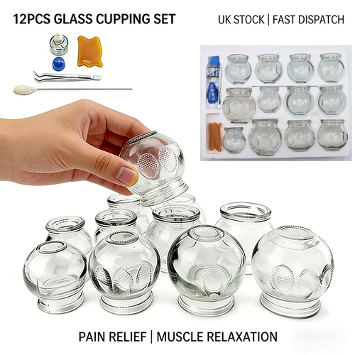 12Pcs Glass Fire Cupping Therapy Set TCM Pain Relief UK Stock