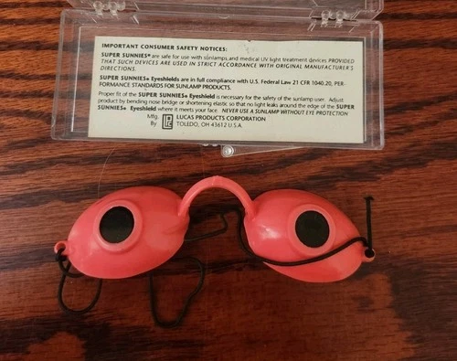 Lucas Super Sunnies Eyeshields Tanning Bed Goggles UV Eye Protection VINTAGE ‘88