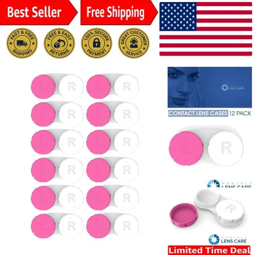 12 Pack Leakproof Contact Lens Cases in Pink - Stylish Eye Protection Supply