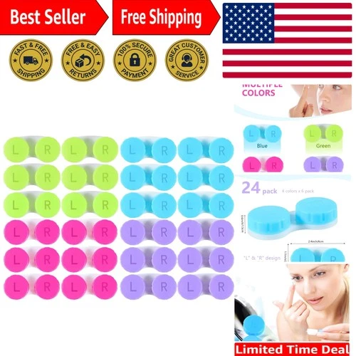 Portable 24 Count Colorful Contact Lens Case Kit - For Everyday Use & Gifting