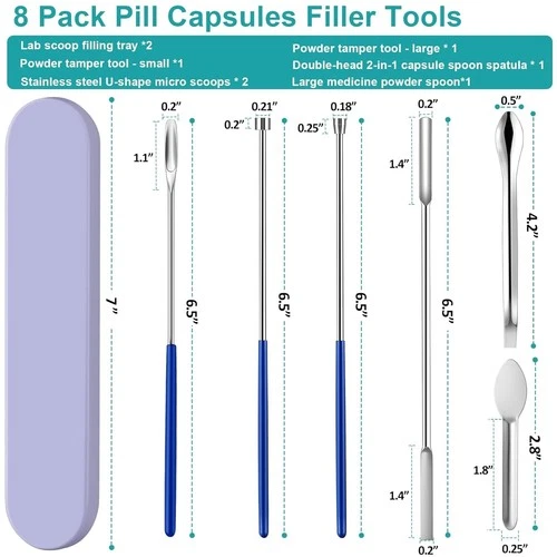 8 Piece Capsule Filling Kit for Empty Pill Capsules - Sizes #000 00 0 1 2 3