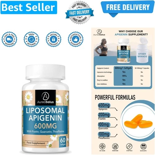 Apigenin 600mg, Optimal Dose Liposomal Apigenin Softgels for Sleep, Relaxatio...
