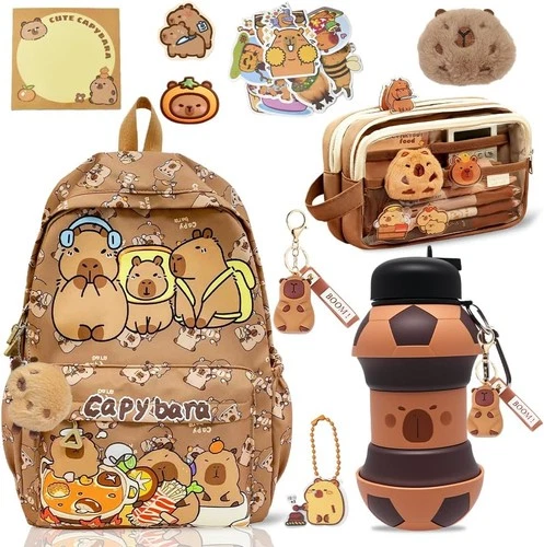 Capybara Backpack Set Football Water Bottle & Keychain, Mini Plush Toy - Cute S