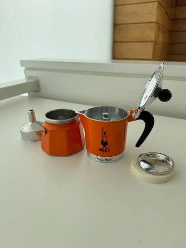 Bialetti Rainbow Moka Pot Caffettiera 3 Cup, Orange with extra filter