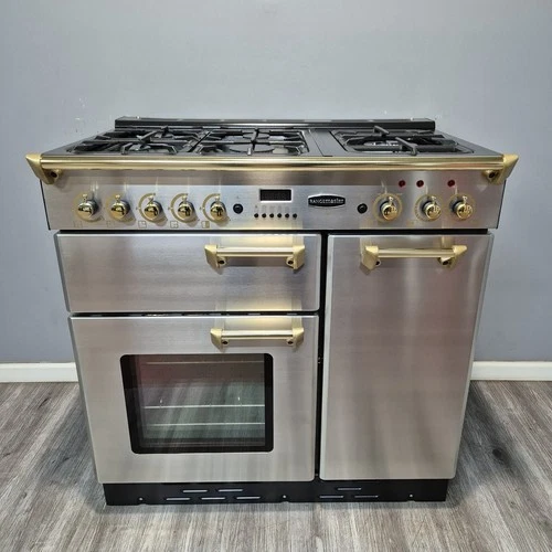 RANGEMASTER CLASSIC 90CM DUAL FUEL IN STAINLESS STEEL AND GOLD....