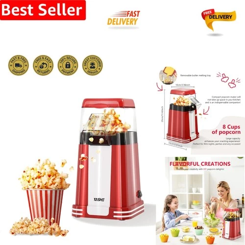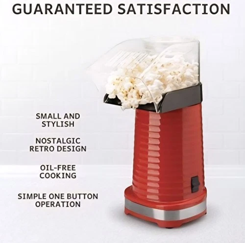 Retro Popcorn Machine Hot Air Electric Healthy Snack Maker Cooks Professional
