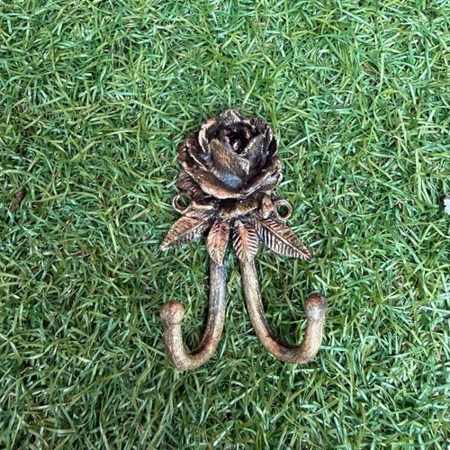 Ornate Rose Double Hook Wall Mount Antique Gold Metal Decorative Hanger