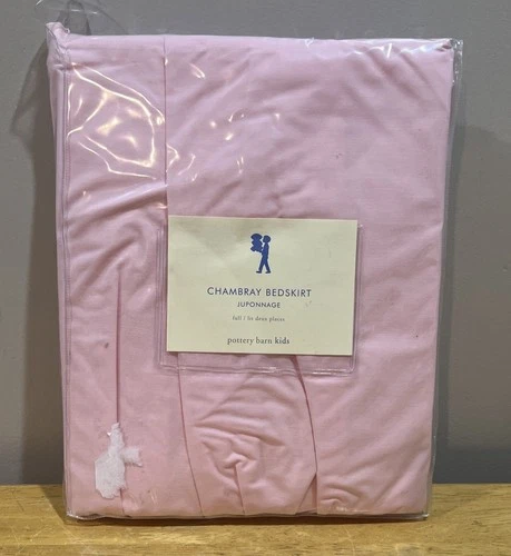 Pottery Barn Kids Pink Chambray Full Bedskirt Gathered "Juponnage" New