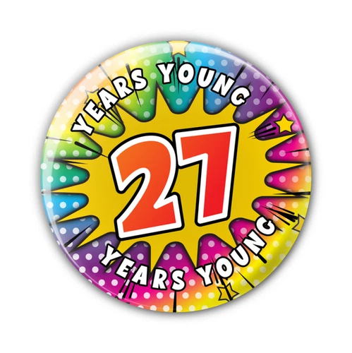 27 - 27th Birthday - Years Young Birthday Badge For Him Her Boys Girls
