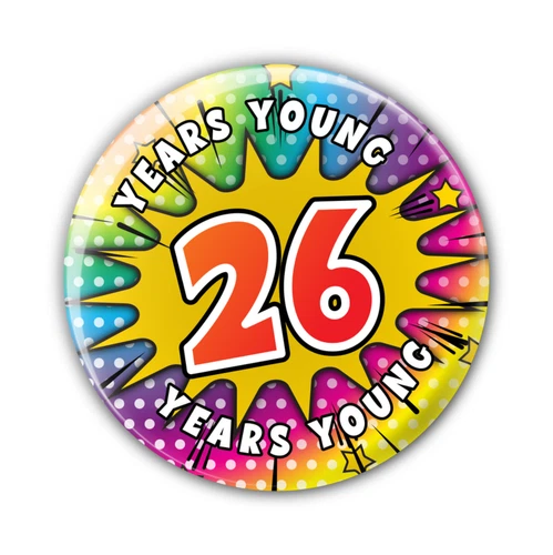 26 - 26th Birthday - Years Young Birthday Badge For Him Her Boys Girls