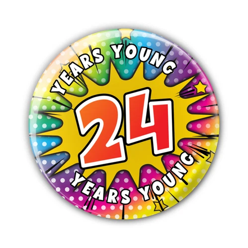 24 - 24th Birthday - Years Young Birthday Badge For Him Her Boys Girls