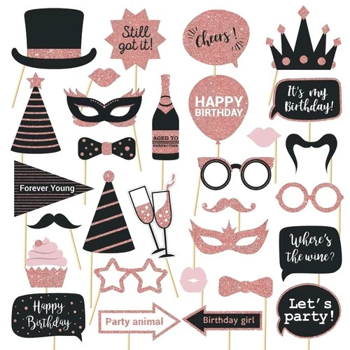 Party Birthday Photo Booth Props, 30Pcs Set of Happy Selfie Color-02