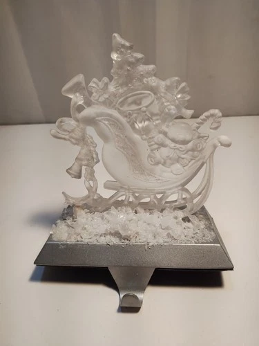 Christmas Santa Sleigh Stocking Holder Acrylic Opaque Crystal Look Snow Elegant