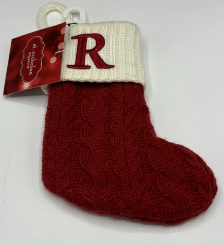 St Nicholas Square 8 Inch Christmas Stocking Monogram Letter R Initial Red Knit