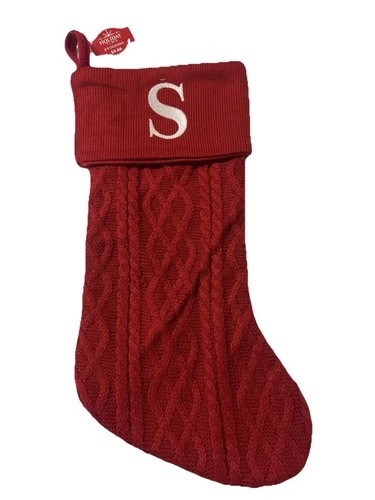 Holiday Time 20” Red Knit Stocking Embroidered Monogram Initial S Christmas