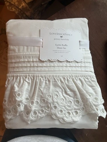 Pottery Barn Teen LoveShackFancy Full Eyelet Ruffle Sheet Set, Ivory NEW