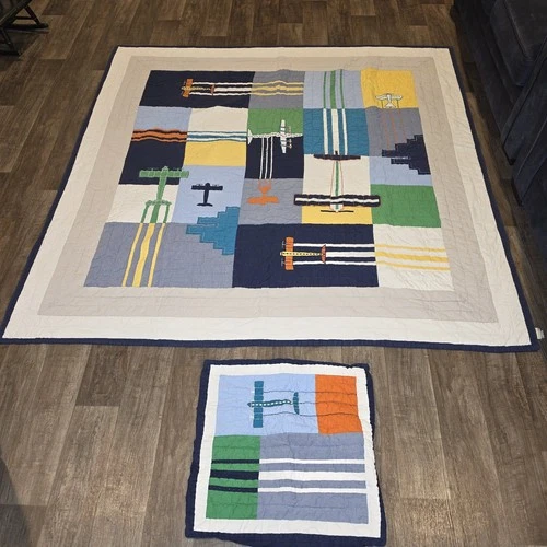 Pottery Barn Kids Quilted Bed Comfort Boys Airplane Print Twin With Shame Cover