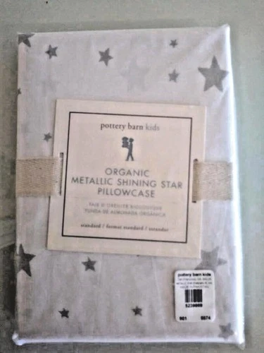 pottery barn cotton SILVER SHINING STAR pillowcase holiday kid gift party y