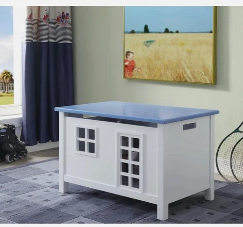 ACME WHITE & BLUE Cottage/House Style Kids TOY TRUNK Storage Cabinet