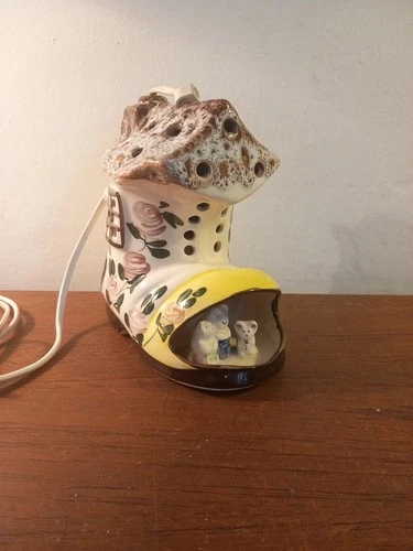 Vintage Derek Fowler Children's Ceramic Boot Shoe Rabbits Bedside Lamp